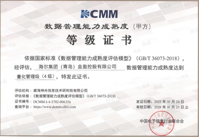 近日,中国电子信息行业联合会公布最新评估结果,盈康一生成功通过《数据管理能力成熟度评估模型》DCMM-4级(量化管理级)认证。