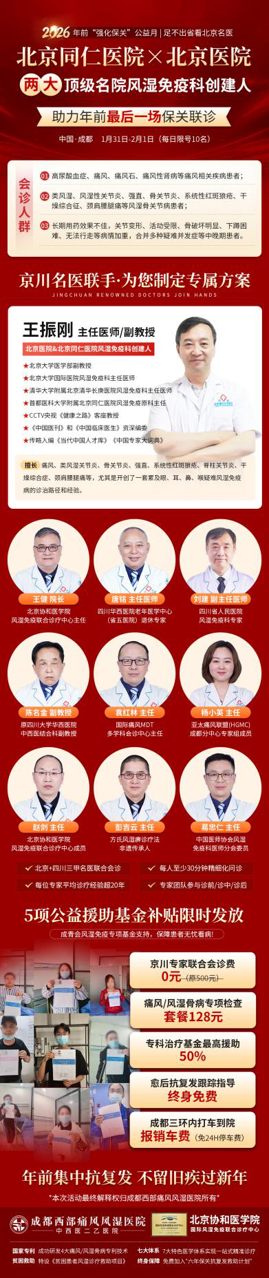 北京两大名院风湿免疫科创始人来蓉免费会诊,5大公益援助速约!