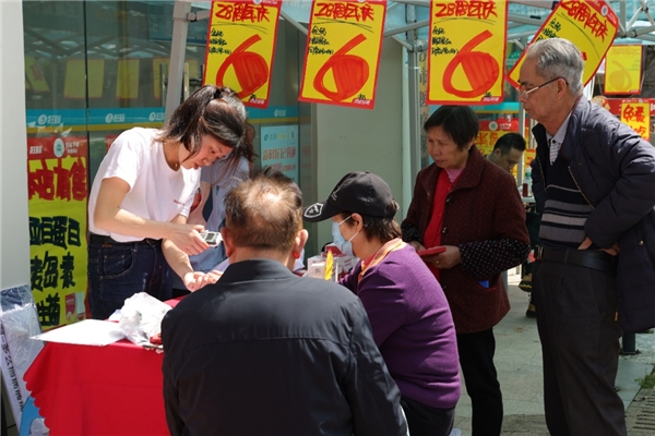 三诺生物工作人员为社区居民进行尿酸免测
