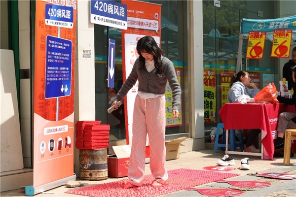 只需要一滴血,居民在家门口就能方便、快捷地测出尿酸值,了解自身尿酸状况,现场专业团队人员还会根据检测结果给予居民健康建议,帮助其提升防范意识和健康管理能力。此外,痛风一般发生在脚部,患者最直接的感受就是痛,三诺生物通过搭建“挑战痛风路”实景互动体验装置,生动模拟痛风发作痛感,引发参与者对高尿酸血症和痛风的重视与警惕。