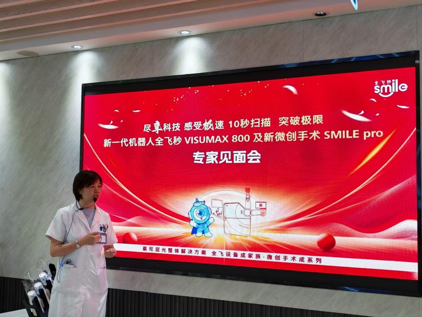 南昌普瑞眼科屈光手术专科主任凌玲博士以“10秒点亮高清视界”为题,用通俗语言拆解技术原理:“传统手术像‘雕刻师’单刀作业,而SMILEpro如同‘机器人+显微镜’的黄金组合,激光臂与显微镜臂实时联动,实现亚毫米级操作精度。”