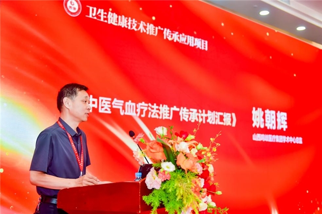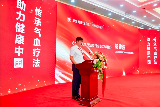 卫生健康技术推广传承项目办公室副主任杨建波代表主办方致词时说:国家卫生健康委流动人口服务中心是《全国卫生健康技术推广传承应用项目》的指导监督单位,并详细介绍了“中医气血疗法项目传承”的立项情况。根据《全国卫生健康技术推广传承应用项目传承人及传承技术管理办法》规定及入选流程,姚登贵先生首创的“中医气血疗法”成功入选《卫生健康技术推广传承应用项目》。杨建波副主任表示:中医气血疗法具有完善严整的理法体系、方药的标准体系,适合现代人健康理念,适合作为优秀的中医药文化普及推广,应加大传承推广应用的力度和范围。