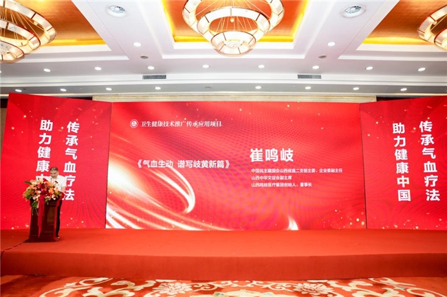传承气血疗法,助力健康中国!7月23日,由卫健委旗下“卫生健康技术推广传承应用项目办公室”主办,中国人口文化促进会中医药文化发展分会、山西鸣岐医疗集团承办的“卫生健康技术推广传承应用研讨会暨中医气血疗法项目传承启动仪式”在山西太原成功举行!200余人应邀参加了本次大会,开幕式由太原电视台主持人杨子主持。
