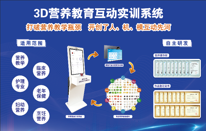 政策落地、知识转化、技能培养,亟需超越“哑巴硬件”的智能化载体支撑。以河南璞泰健康科技3D营养教学互动实训系统为例,其设计直击四大困境,构建闭环解决方案: