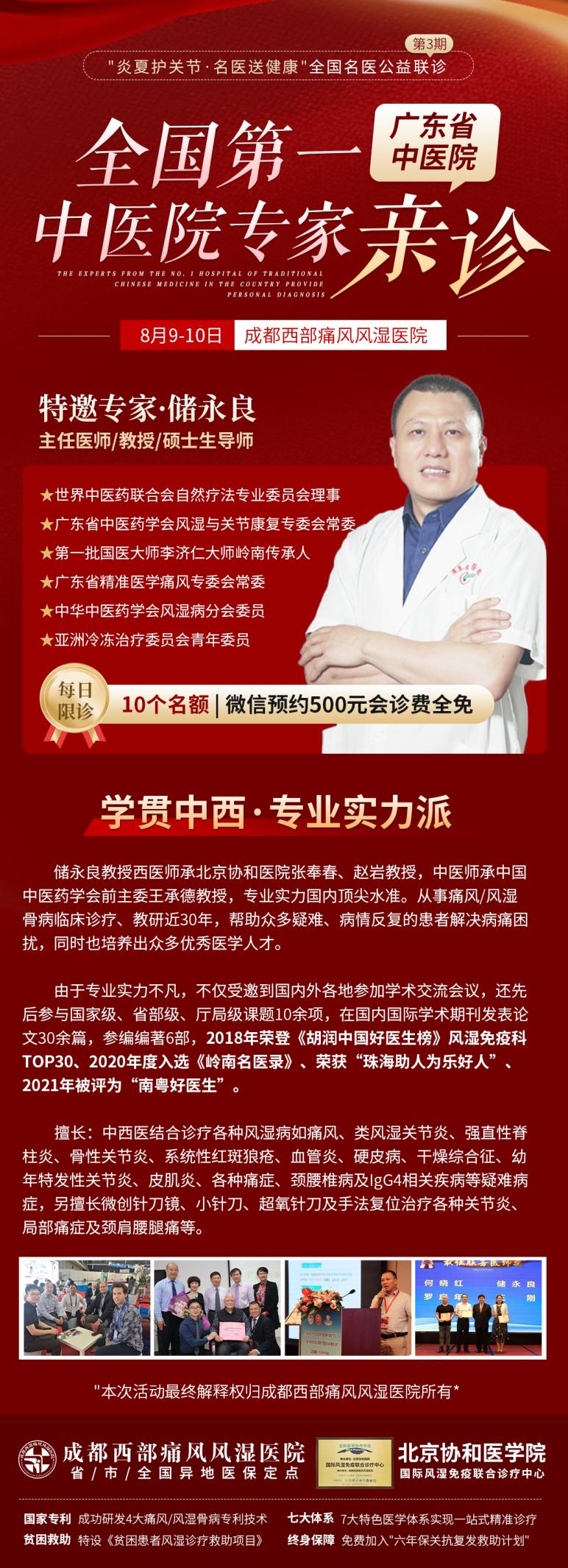 广东省中医院专家储永良携川内名医成都会诊,痛风风湿患者速约