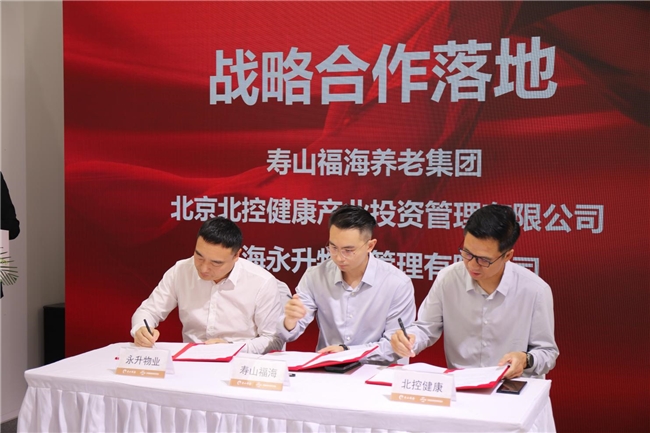 战略合作协议签约环节,寿山福海养老集团与北京北控健康产业投资管理有限公司、永升服务集团正式达成三方战略合作。三方将通过深度整合物业资源,推动适老化服务与社区嵌入式养老场景更精准地触达老年群体,同时叠加资本赋能,加速“超星准”体系的规模化落地与全国布局,最终构建起从“体系设计”到“生活融入”的全链条服务闭环,让创新养老模式真正走进日常生活。