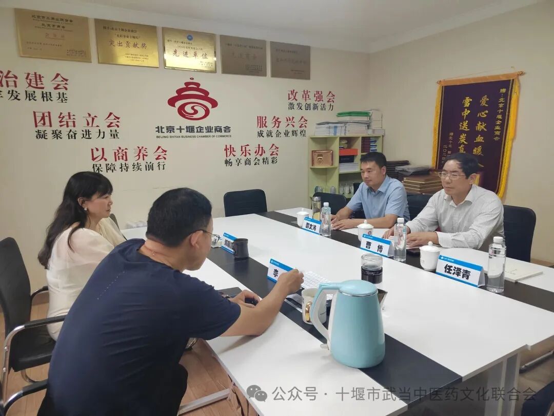 9月8日至10日,武当中医药文化联合会会长曹博赴北京考察调研,期间与中国国际文化交流中心、全国中医药文化大会组委会、中国汽车工业协会、北京十堰企业商会、中国文信网、发布网就武当中医药健康文化建设及武当文化在海内外的推广合作等进行了深度交流。武当中医药文化联合会专家组副组长邵文涛,联合会理事、武当睡功非物质文化遗产代表性传承人任泽清,联合会理事、东风康明斯工业服务主任李伟陪同调研。