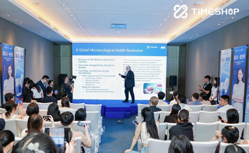 本次“双A·逆时”圆桌论坛由香港抗衰品牌TimeShop主办,正式发布了“双A”核心战略,品牌以AKG Pro与肠倍轻AKKBOOM为两大引擎,构建了“细胞能量+肠道健康”的双轨抗衰体系。此次活动特邀嘉宾国际营养学专家Gene Bruno教授,不仅带来了全球微生态健康领域的最新研究成果,更深度拆解了TimeShop产品背后的科学逻辑。