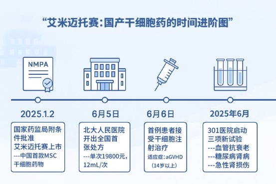 从医院开出首张处方、阿里健康助力艾米迈托赛商业化,再到首位患者康复出院,这些看似各自独立的三则新闻,却在2025年干细胞产业化进程中汇聚成势。