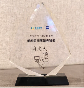 周文天教授荣获“新微创全飞秒TM手术SMILEpro手术质量先锋奖”