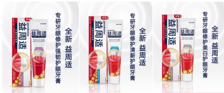 在中国大陆全新上市的益周适牙膏有两个系列,分别是专研牙龈修护系列和精研牙龈专修系列。