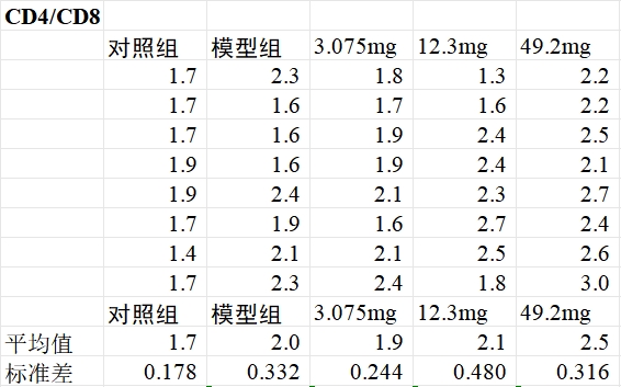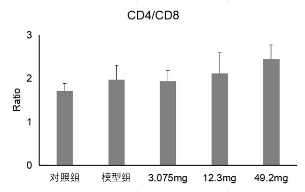 研究显示,模型组小鼠CD4/CD8细胞比值提升30.3%