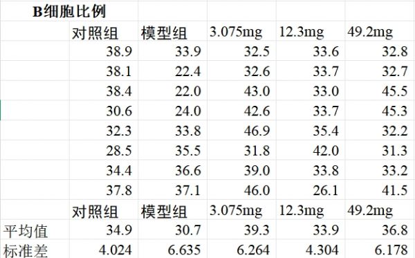 研究显示,模型组小鼠B细胞比例提升15.6%