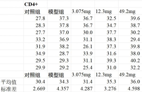 研究显示,模型组小鼠CD4⁺T细胞计数平均提升15.6%