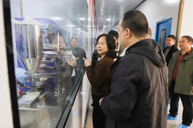 在公司领导陈才安、梁爱春、凌佩玲的陪同下,调研团队先后深入制剂车间、产品展厅等核心区域,全方位考察企业生产运营与发展布局。在现代化制剂车间,调研团队近距离观摩药品生产全流程,详细询问质量管控标准、工艺创新难点及产能提升举措,对公司严谨规范的全链条生产管理体系给予高度认可。在产品展厅,通过实物展示、功效讲解与互动交流,调研团队深入了解双蚁祛湿通络胶囊、双蚁复方感冒灵颗粒、复方金银花颗粒等核心产品的性能与疗效,对公司深耕抗感治咳和风湿类药物领域、传承创新壮医药文化的发展定位形成直观认知。