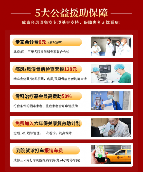 大家深知,对于长期受疾病困扰的患者而言,经济压力往往是规范治疗的一大障碍。为此,成青会风湿免疫专项基金提供全方位公益援助: