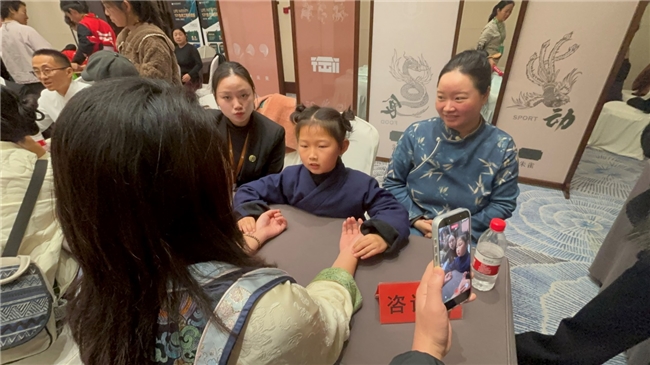 大会现场还呈现了一幕道医文化传承的暖心场景。沈亦周8岁的女儿Ellie作为“最小传承人”,为参会者开展公益脉诊服务。她手法娴熟、神情专注,结合脉诊结果细致解析参会者的体质状态与情绪瘀滞情况,诊断精准度远超同龄孩童,得到了现场专家学者的一致认可与称赞。“小姑娘把脉沉稳,精准指出我存在肝气郁结问题,还给出了针对性建议,十分专业。”一位从业多年的资深中医师感慨道,这一场景生动展现了道医文化“薪火相传、代代相续”的生动脉络。