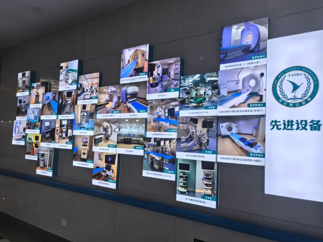 医院拥有一流的诊疗环境及先进的大型医疗设备,包括500排动态宝石CT、PET-CT、3.0T磁共振、双C型臂血管造影机、高能直线加速器、3D超高清腹腔镜系统、EDGE靶向放射外科系统(速锋刀)、数字化心脏复合手术室及亚洲较大规模之一的高压氧舱群(50人舱位)等。电子胃肠镜系统、彩超、呼吸机、监护仪、腹腔镜等专科常规设备实现了更新换代。同时,医院还配套有建筑面积5千平方米、实验设备近亿元,涵盖基因诊断、分子病理、干细胞临床试验研究的燕达医学研究院(中心实验室)。