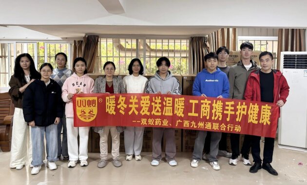 1月14日,广西双蚁药业有限公司联合广西九州通医药有限公司,走进广西理工职业技术学院,成功举办“寒冬关爱送温暖 工商携手护健康”爱心药品捐赠仪式,为广大师生的寒假与新春健康筑牢防线。