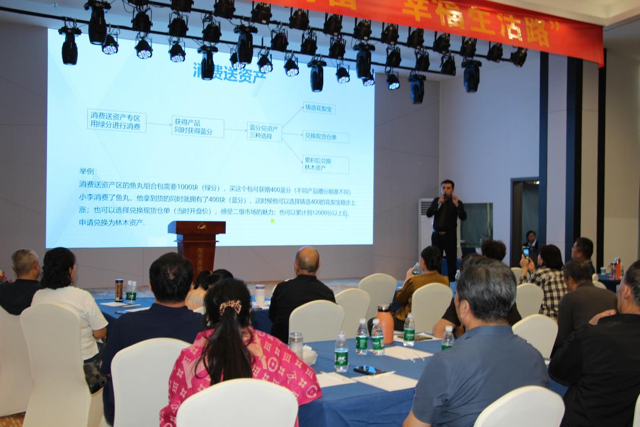 福慧万家市场指挥中心负责人宋玺章则聚焦商城核心模型,详细介绍了“消费送资产”的增值模式、合规运营保障及操作流程。宋总强调,商城依托国家级陶瓷版权交易中心,财务全程经国家级交易中心监管,以寿鹿山优质健康产品为供给、黄花梨林木资产为托底,搭配零门槛集采团购引流机制,让普通消费者也能共享数字经济红利,其合法合规的运营体系与创新模式获得现场广泛认可。