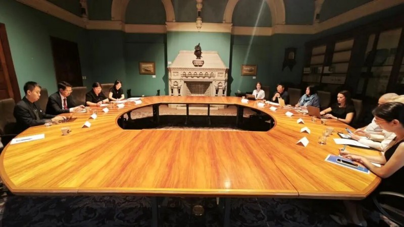 在悉尼大学,山西中医药大学党委书记李华荣、振东制药董事长李昆与药学院药理系Zhou Fanfan(周凡凡)主任、医学院病理系研究生委员会主任Bob Bao教授等举行会谈,深入探讨了科研学术、合作机制等议题。
