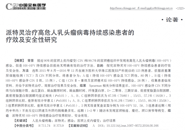 聚焦派特灵对高危HPV效果 核心期刊研究提供临床干预新参考