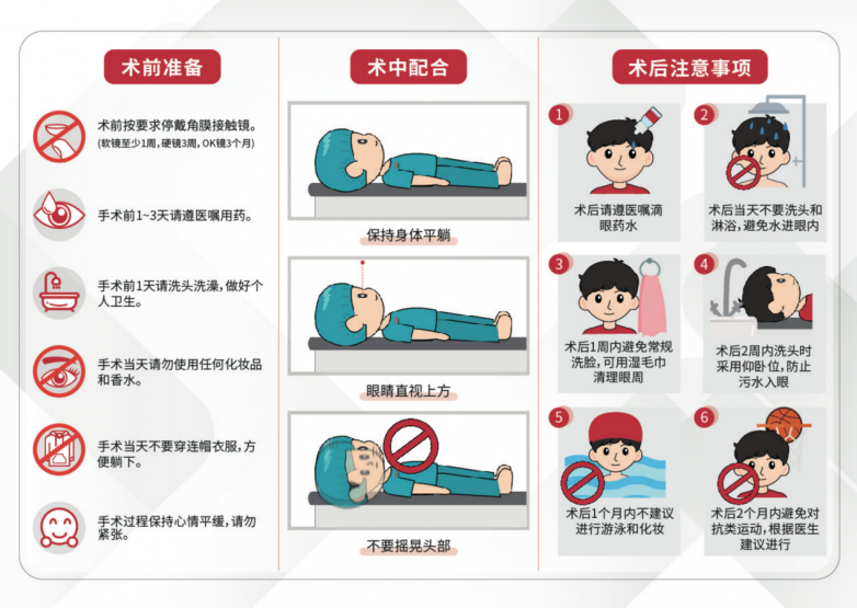 术前需做20余项眼部检查(约2小时),佩戴隐形眼镜者需提前停戴: