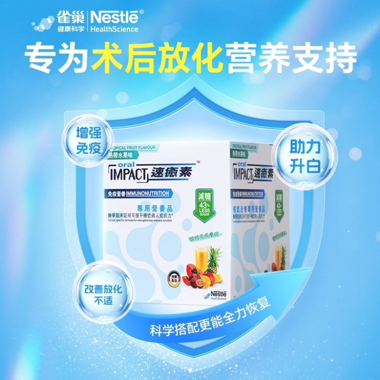 速愈素是雀巢健康科学旗下专为术后、放化疗肿瘤患者提供的口服营养补充剂(属于特殊医学用途配方食品)。它在肿瘤免疫营养领域具有极高的专业度,其核心优势在于独特的三大免疫营养组合。