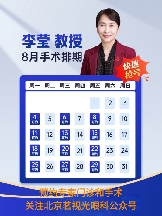 想找国内近视激光手术领域的权威专家李莹教授做近视手术?不用再四处打听——李莹教授已正式加入北京茗视光眼科,每周一、三、五固定出诊及手术,为有近视矫正需求的患者提供专业诊疗。