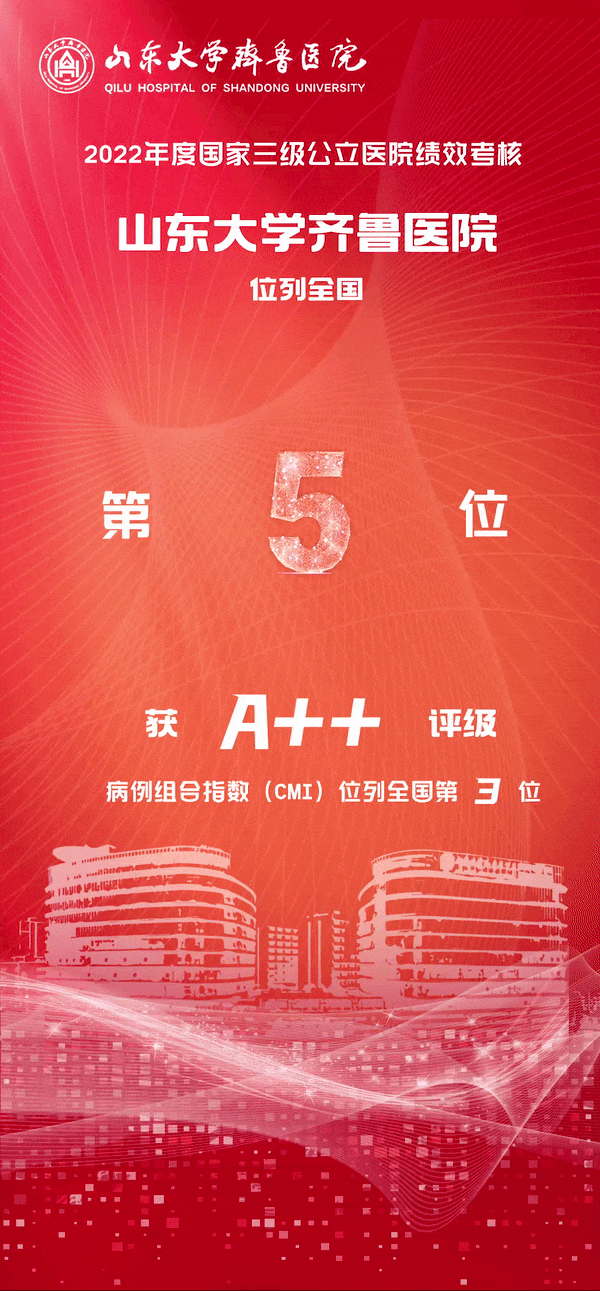 1月8日,国家卫生健康委公布2022年度国家三级公立医院绩效考核结果,山东大学齐鲁医院再获佳绩,综合排名全国第5位,稳居A++等级,其中体现医院疑难急危重症收治能力的病例组合指数(CMI)位列全国第3位。