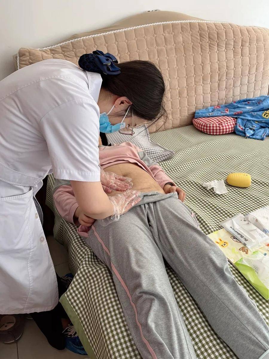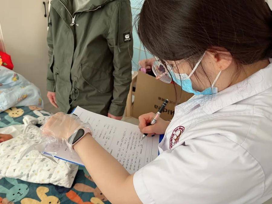 来到产妇家中,家庭医生首先进行手卫生,然后产妇和宝宝做健康检查,围绕各种健康指标开展监测,并将结果仔细记录。如产妇一般健康情况、一般心理状况、血压、体温、子宫、乳房、伤口、恶露恢复等,新生儿的喂养、睡眠、精神状态、生长发育评估、黄疸,脐带脱落情况。此外,指导产妇如何正确进行母乳喂养、产后营养调理、产后盆底康复、产后形体恢复,指导如何进行婴儿抚触。对产妇进行精神和心理指导,并告知产妇产后42天复查的重要性及指导避孕措施。