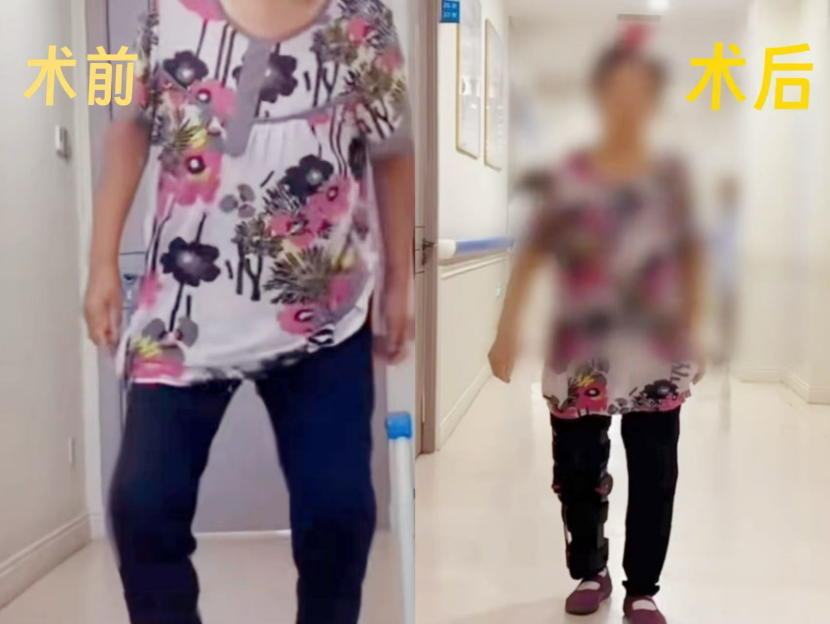 手术过程中,杨主任凭借精湛的技术和丰富的经验,成功为周女士置换了病变的膝关节。这场手术不仅是对医术的考验,更是为患者点亮生活希望的关键一步。术后奇迹迅速显现。术后6 小时后,周女士就能下地行走;短短一周,她已能正常迈步;预计10-15天,她的生活将基本恢复如常。