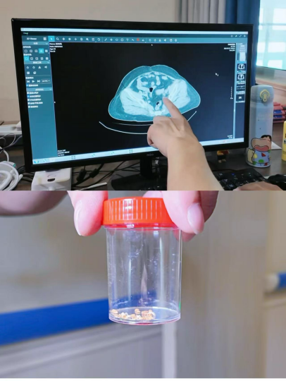 针对王阿姨的病情,赵凤军主任和他的团队进行了细致评估,最终决定采用无创取石方案。手术中,医生借助软镜精准抵达结石位置,配合负压吸引鞘,将这枚5 公分的输尿管结石彻底打碎后直接吸出。整个过程无需开刀,对肾脏和输尿管几乎没有损伤。