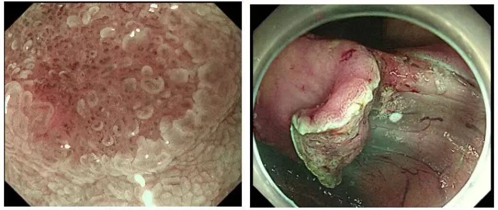 分化程度判断:通过放大内镜观察血管和腺体形态,可初步区分高分化癌(保留部分腺管结构)与低分化癌(血管杂乱、结构破坏),指导后续治疗选择(如ESD或手术)。