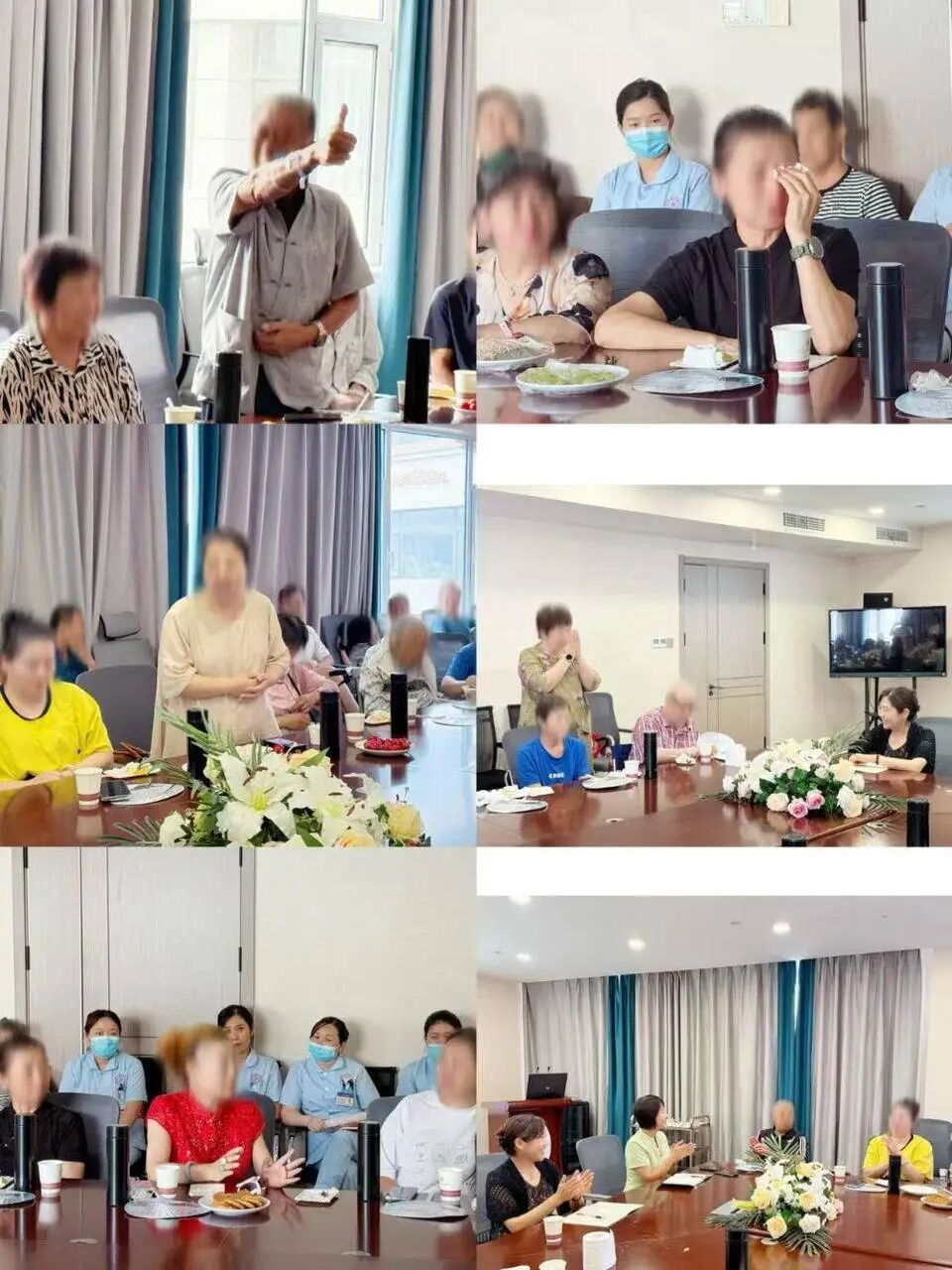 活动现场准备了丰富的水果点心,以及带有医院标志、可自显温度的保温杯。在欢乐的氛围中,众人齐唱生日歌送上祝福。多位患者踊跃发言,纷纷感谢医务人员的服务,直言在南郊医院感受到了家的温暖。其中,一位来自德州禹城的患者尤为激动,他在南郊医院骨二科置换关节,在感受到南郊住院服务后,为南郊医院骨二科全体医护竖起了大拇指;还有一位来自新疆的脊髓损伤患者,他曾在齐鲁医院手术后被判定恢复无望,转入南郊医院康复科后却取得显著疗效,现已能基本行走,非常感激康复科医护人员的贴心细致的照顾;还有一位女士,其80多岁的父母(母亲患脑梗、父亲患肺心病)同时住在内一科,她深切体会到内一科医护人员如家人般的关怀;肿瘤二科一位脑胶质瘤患者已是二次入院,对肿瘤二科医护人员的暖心服务感动不已,几位患者发言时均激动落泪。