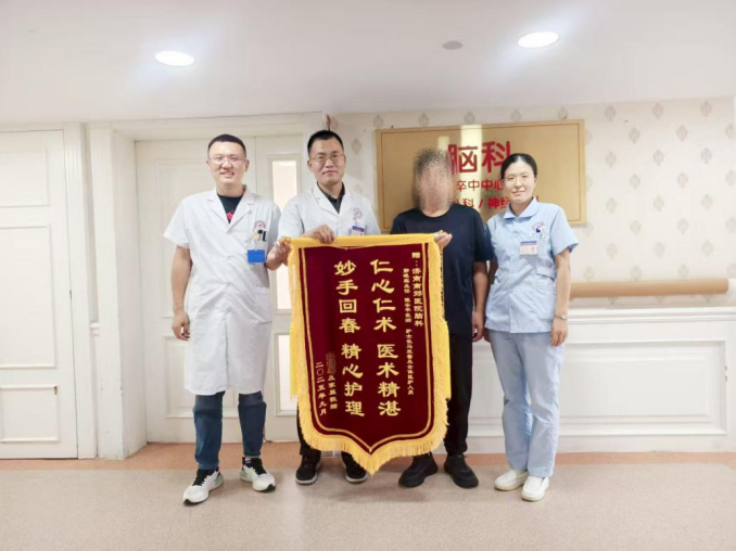 清晨的济南南郊医院脑科病区,三面鲜红的锦旗在阳光下格外醒目。这是一个普通的工作日上午,却因为三个不普通的生命故事而显得意义非凡。
