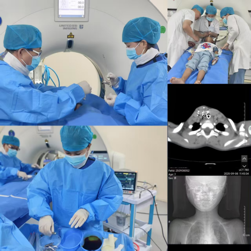 9月12日下午,在充分术前准备的基础上,葛新华主任团队与麻醉科通力协作,为患儿实施了这台高难度粒子植入手术。术中,葛新华主任借助影像引导精准定位,将数颗微小碘125粒子植入肿瘤区域,整个过程顺利。患儿术后安返病房,生命体征平稳,未诉任何不适。