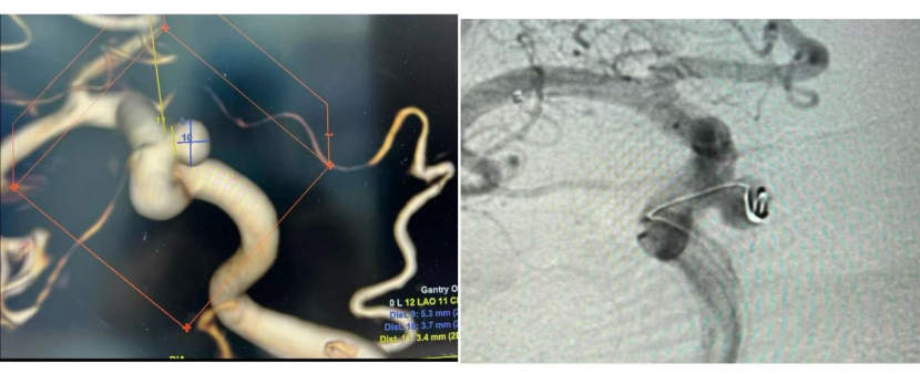 手术过程顺利,术后造影证实动脉瘤栓塞致密,载瘤动脉通畅无阻。