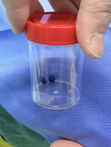 手术中,王兆太主任通过腹腔镜与胆道镜协同操作,清晰观察胆囊及胆囊管状态,可见胆汁自然向胆囊腔溢出,确认胆囊功能完好;随后在胆道镜下仔细探查,确保取尽结石,无残留,最终顺利取出2枚与术前B超诊断完全吻合的结石。整个手术创伤小、恢复快,完整保留了胆囊的储存、浓缩胆汁等生理功能。