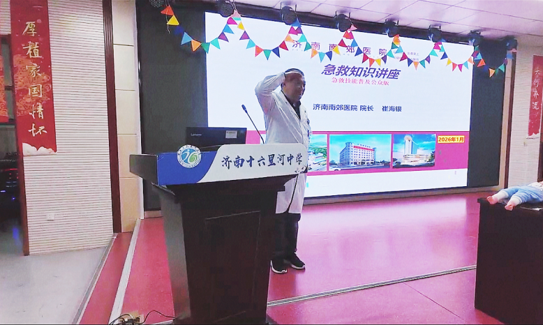 近日,济南十六里河中学的会议室里气氛热烈——济南南郊医院崔海银院长带来的应急救护专题培训,让100余名教师沉浸式学习了一堂"生命必修课"。