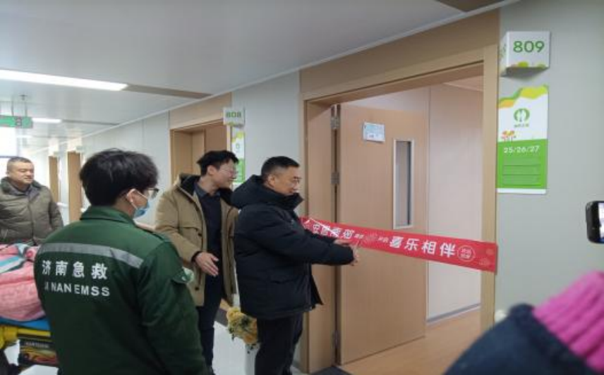 剪彩过后,暖心的入住环节正式开启。“欢迎长辈们回家!”院区门口,工作人员笑容相迎,搀扶指引间尽显温情。长辈们接过写有“喜乐相伴”的红色门幅,亲手将其贴在门楣之上。红字在阳光下闪耀,不仅装点了空间,更定格了“从此便是安心处”的承诺。从门口到房间的短短路程,藏着医院对安全的极致考量。适老化扶手、护理人员的全程搀扶与轻声叮嘱,让每一步都走得安稳从容。推门而入,整洁明亮,阳光满屋,卸下疲惫的瞬间,“家”的归属感油然而生。