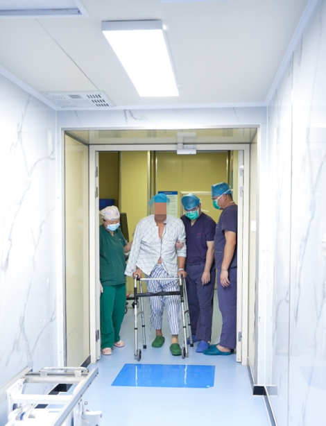 手术台上,杨主任格外注意软组织平衡,减少对周围神经的牵拉。真正体现“快速康复”理念的一幕发生在术后——在完善的围手术期镇痛管理下,吴先生竟在医护人员陪同下,自己平稳地走出了手术室!