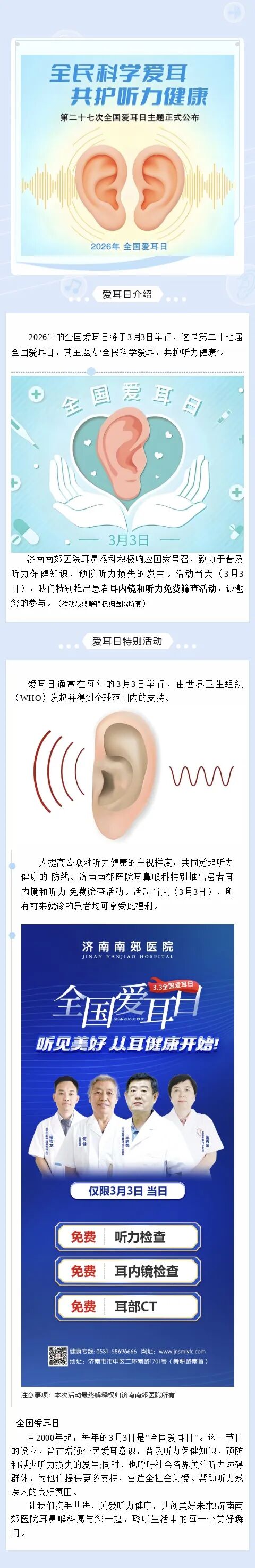 3月3日全国爱耳日|全民科学爱耳,共护听力健康,济南南郊医院在行动!