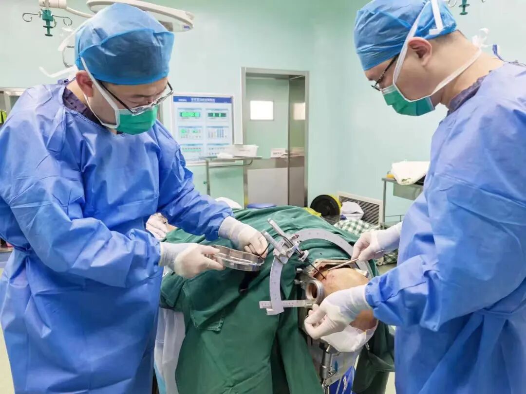 手术过程中,郭晓宾主任团队依托高精度立体定向导航系统,将穿刺针精准引导至右侧小脑半球血肿中心,在实时影像监测下缓慢抽吸,彻底清除血肿占位,有效缓解了对脑干的压迫。整台手术操作精细、风险可控,为后续康复争取了宝贵时间。