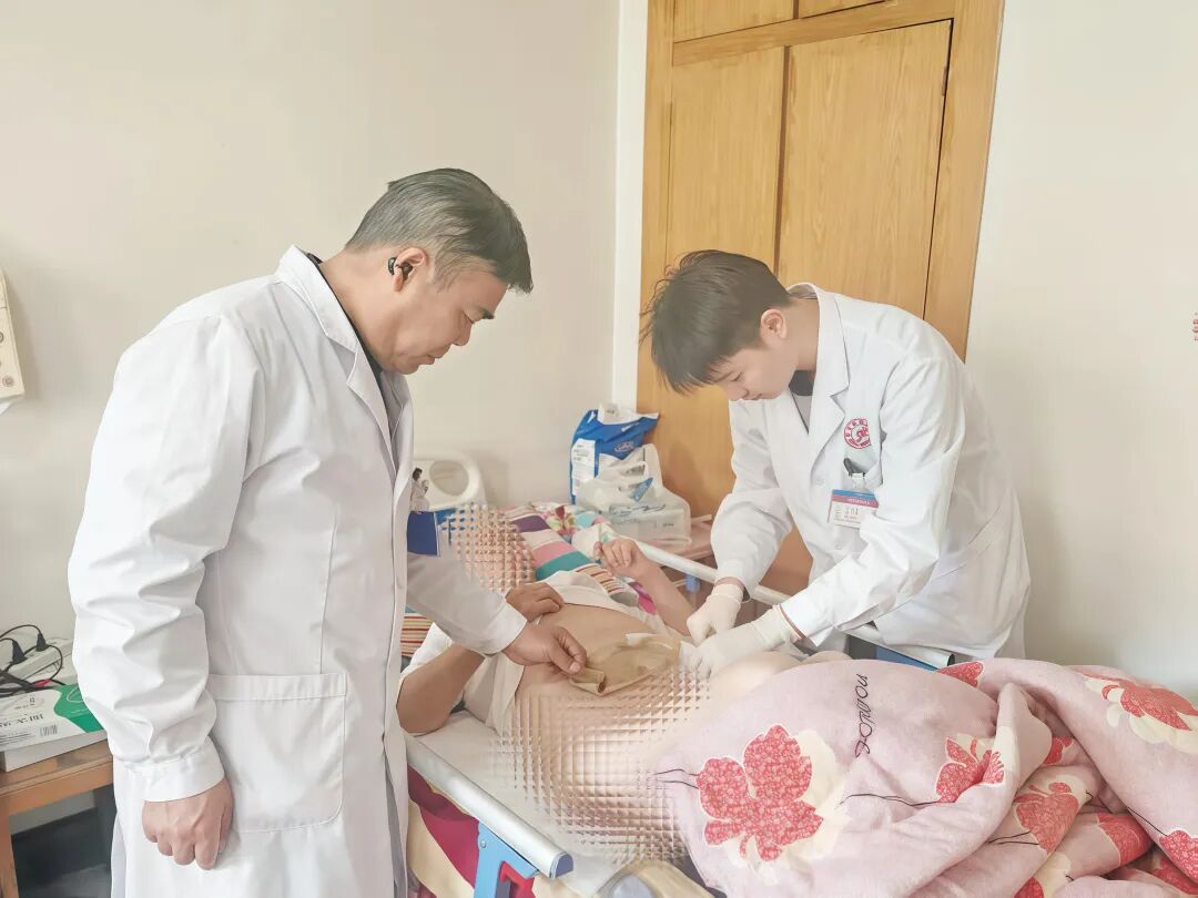 患者高龄、体质极差且长期卧床,手术风险极高。为解除梗阻,普外科王兆太主任团队迎难而上,经多学科会诊制定围术期方案,先行营养支持、改善心肺功能等充分术前准备后,在多学科协作下成功实施左半结肠切除术。术后因患者基础状况较差,切口愈合不良,经积极营养支持、抗感染及精细化换药等综合治疗,刀口大部分愈合,仅残留少量皮肤创面后出院。但患者长期卧床、往返医院困难,居家护理成为家属面临的难题。