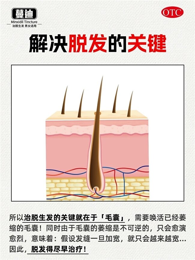 在众多治疗脱发的药物中,米诺地尔是经国际公认、临床验证有效的外用成分。它的作用机制是通过扩张头皮血管,改善毛囊周围的血液循环,为毛囊提供充足的氧气和营养物质,刺激毛囊从休止期向生长期转化,从而促进头发生长。