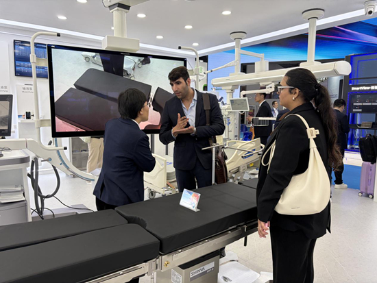 洁净技术展区同样人流如织。新华医疗此次带来的亮点产品之一——STable-M8000电动手术床吸引了不少参观者驻足问询。“我们采用全电机驱动技术,通过7组高精度电机满足不同手术对体位稳定性的要求。床体采用头板、背板、腰桥、座板、腿板,五段模块化结构,头板、腿板配备挂钩快锁接口,支持3秒快速拆换;双重控制系统包含手持遥控器与立柱实体按键双操作模块,搭配一体式液压四轮联动刹车,确保术中零位移风险……”一位外籍采购代表在听取工作人员介绍后表示,“这类产品对于提升医疗效率、降低手术风险具有切实意义。”